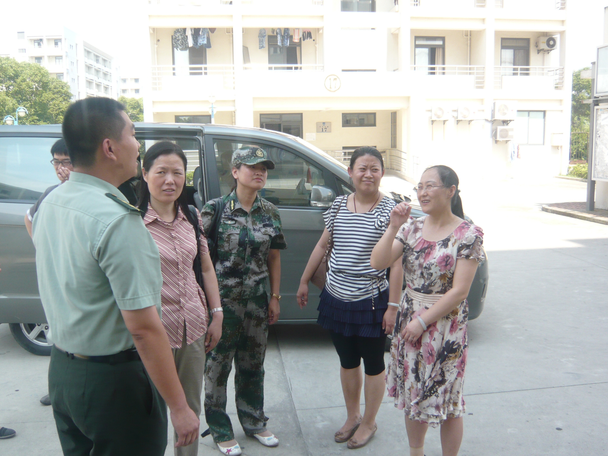 7月4日下午两点,炽日灼地,必赢76net线路唯一官方网站党总支书记王喆,党总支书记、学工委主任王越来到奉贤前来探望军训官兵和受训学生。
